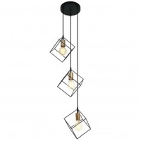 ItaluxIndustrialna LAMPA wisząca MORESTEL MDM-4244/3 BK+BRO Italux kwadratowa OPRAWA metalowy ZWIS klatka kaskada czarna złota