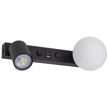 TK LightingKinkiet naścienny z ładowarką USB Vox 10152 bańka regulowany czarny biały