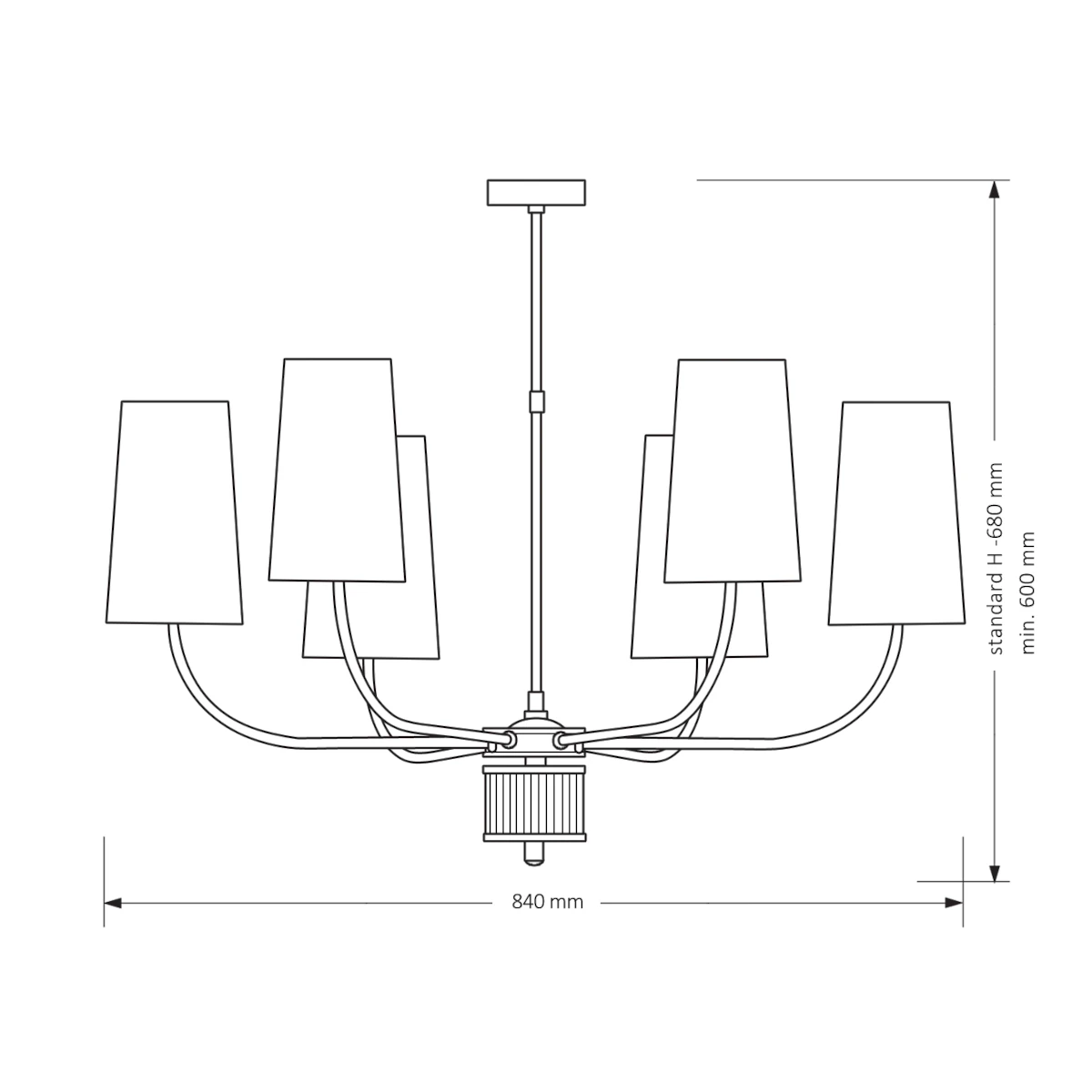 Abażurowy żyrandol Pesaro PES-ZW-6 (Z) do jadalni mosiądz czarny