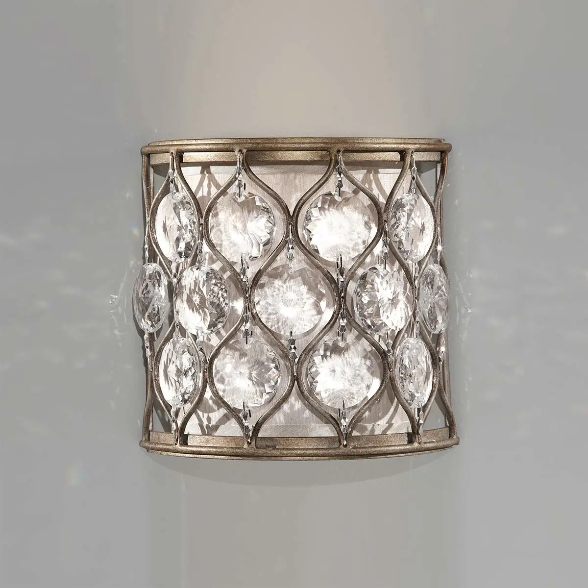 Antyczna LAMPA kinkiet Lucia FE-LUCIA1 Elstead FEISS okrągła OPRAWA metalowa ścienna glamour srebrna