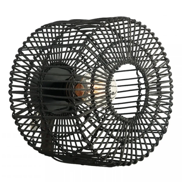 Ażurowy ścienny kinkiet do sypialni 20240 nocny rattanowy czarny