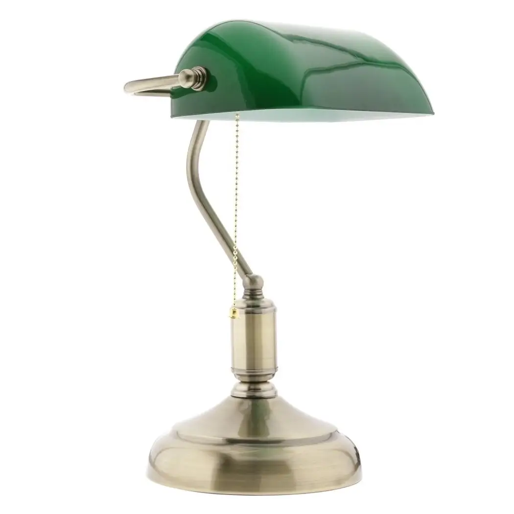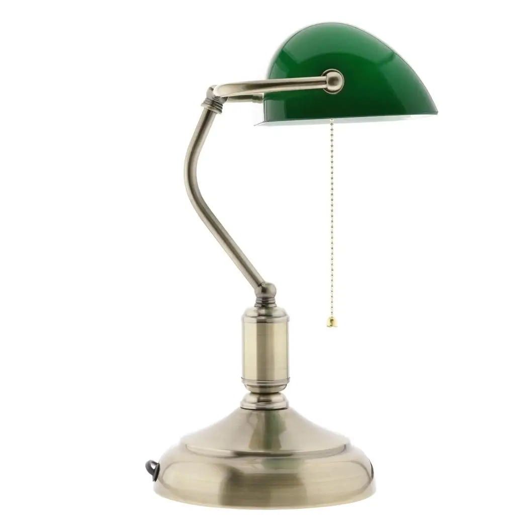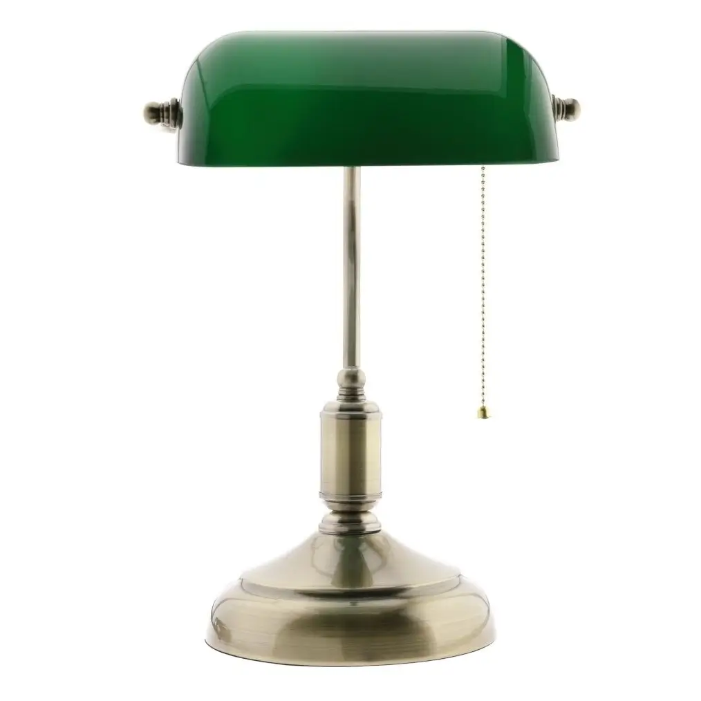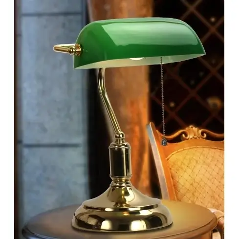 Bankierska lampa stołowa BANKER Abigali do gabinetu stojąca zielona złota