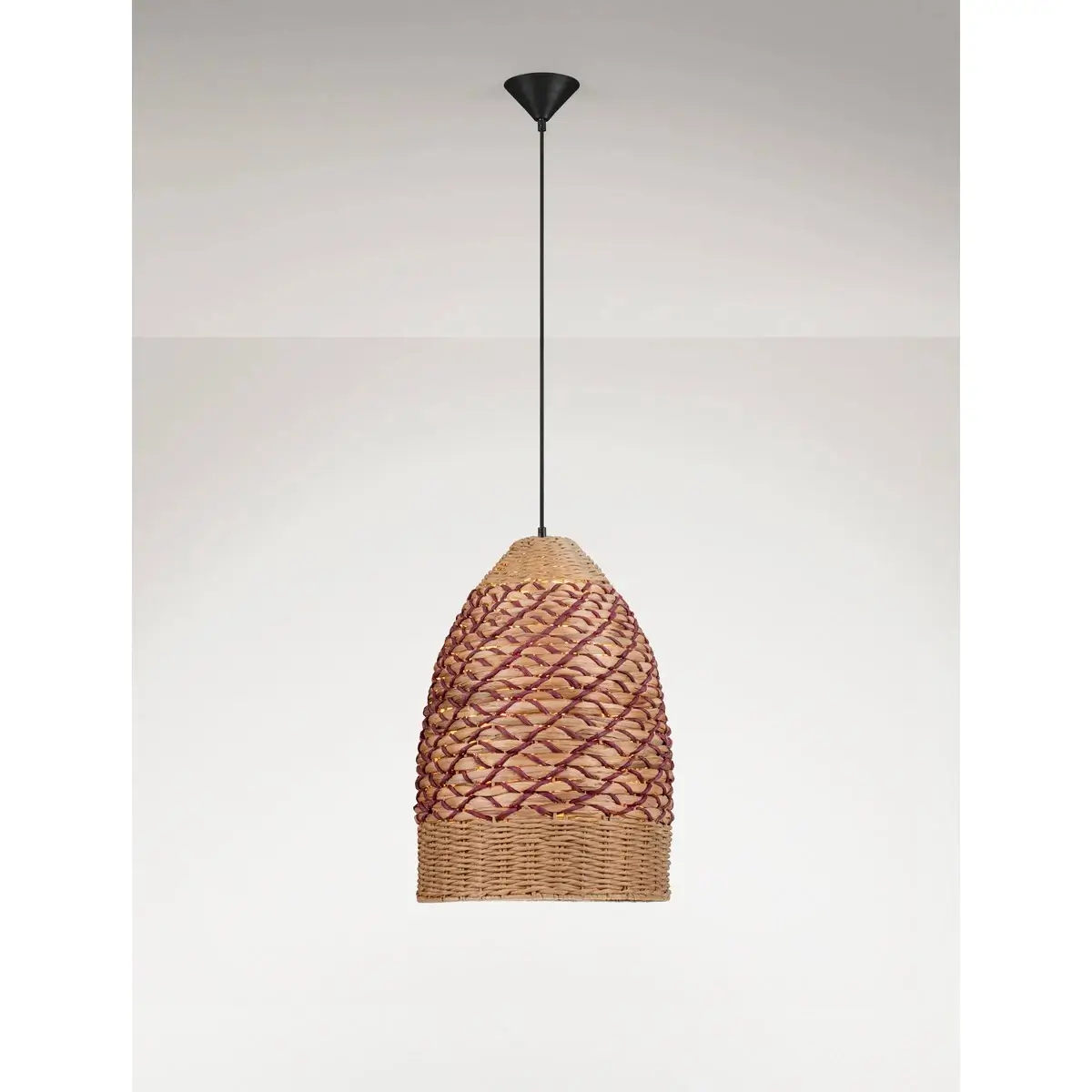 Model Sarmena jest wykonany z praktycznych i trwałych materiałów, gwarantując jego użytkownikom radość i zadowolenie na wiele lat. Gustowne połączenie kolorów drewniany oraz czerwony lampy sprawi, że lampa sprawdzi się zarówno w jasnych, jak i ciemnych wnętrzach. Materiały zastosowane w lampie to hiacynt wodny oraz sznurek dzięki temu będzie ona łatwa w pielęgnacji i w utrzymaniu czystości.