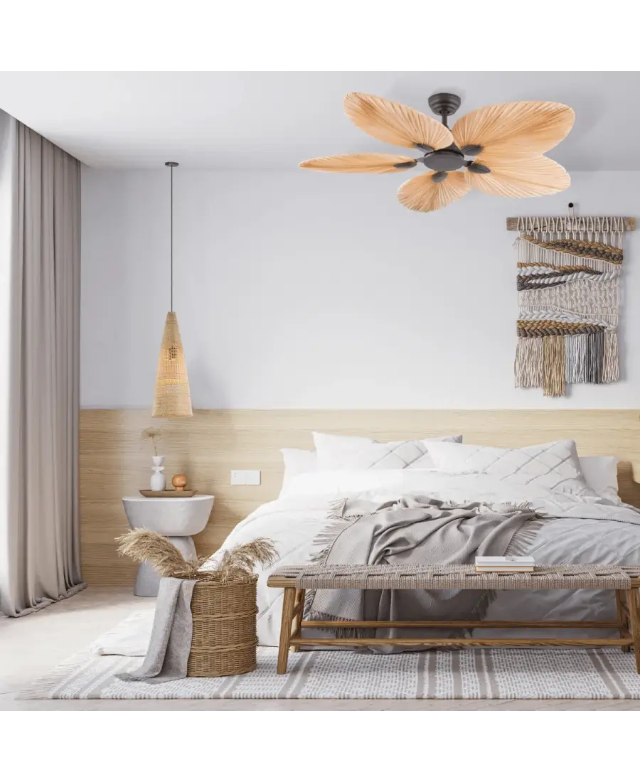 Designerski wentylator sufitowy 19139 liść palmowy brązowa pomarańczowy