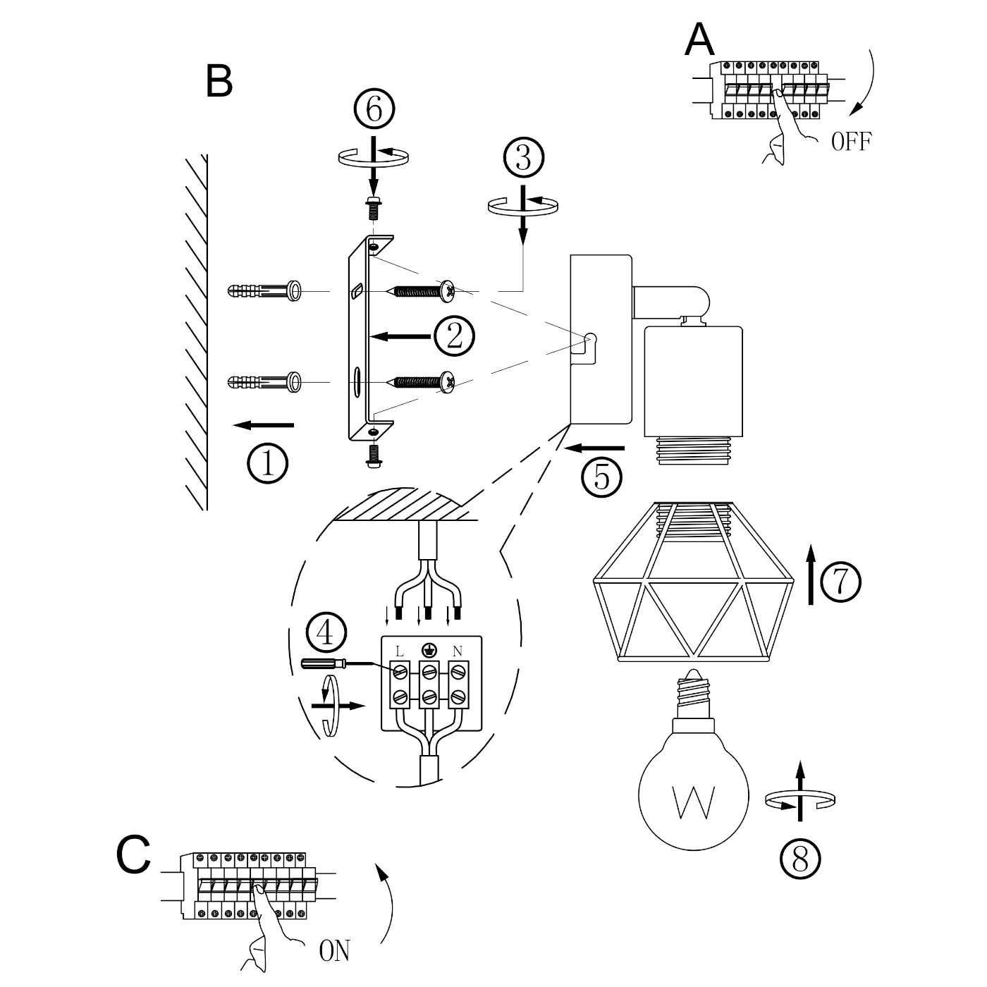 Druciana LAMPA ścienna XARA I 54802S-1 Globo metalowa OPRAWA industrialny kinkiet czarny