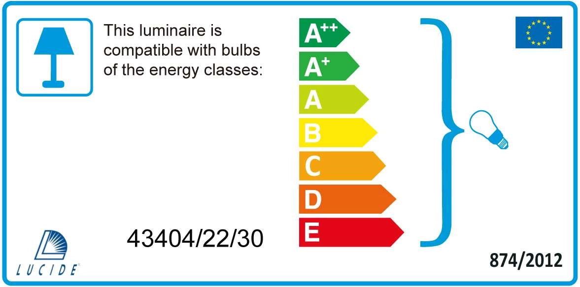 Oprawa dostosowana jest do źródeł światła o klasach energetycznych od A++ do E oraz żarówek LED o dowolnej mocy.