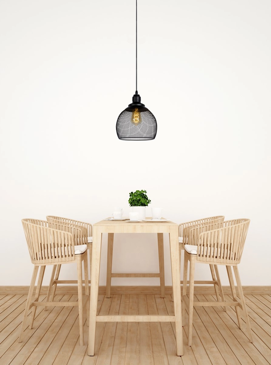 Wisząca lampa MESH będzie idealnym elementem dekoracyjnym we wszystkich aranżacjach w stylu industrialnym czy loftowym. Oprawa posiada niezwykle interesującą formę o siatkowej fakturze, która swoim kształtem nawiązuje do kopuły. Oświetlenie ma kolor czarny a tworzywem, z którego zostało wykonane jest metal. Lampa ma możliwość regulowania wysokości na przewodzie, dzięki czemu można ją umieścić w stylowo urządzonych pomieszczeniach takich jak: jadalnia, kuchnia czy salon.