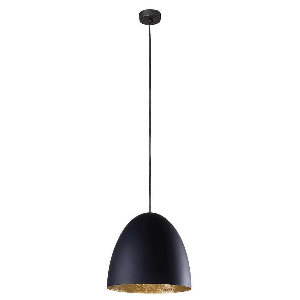 Jadalniana lampa wisząca Egg 9022 czarny zwis metalowy nad stół łączy w sobie wyjątkowy design oraz uniwersalny i ponadczasowy styl, co stwarza szereg możliwości zastosowania w Twoim Domu. Unikalna forma oświetlenia, zaakcentuje wystrój pomieszczeń, a blask światła wprowadzi komfortową i przytulną atmosferę, sprzyjającą spotkaniom towarzyskim jak i spędzaniu czasu wśród najbliższych.Oświetlenie z serii EGG cechuje się funkcjonalnością i praktycznością. Gustowne połączenie kolorów oprawy: złoty;czarny i zastosowanych w oprawie materiałów: Metal | stal sprawi, że znajdzie zastosowanie zarówno w ciemnych jak i w jasnych wnętrzach.
