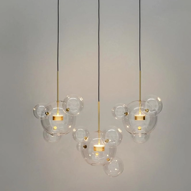 Trzy główne kule zawieszone są na delikatnych przewodach, całość umieszczona jest na jednej podsufitce.