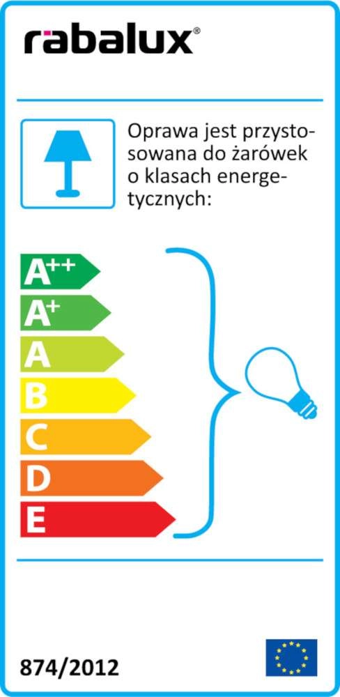 Oprawa dostosowana jest do źródeł światła o klasach energetycznych od A++ do E oraz żarówek LED o dowolnej mocy.