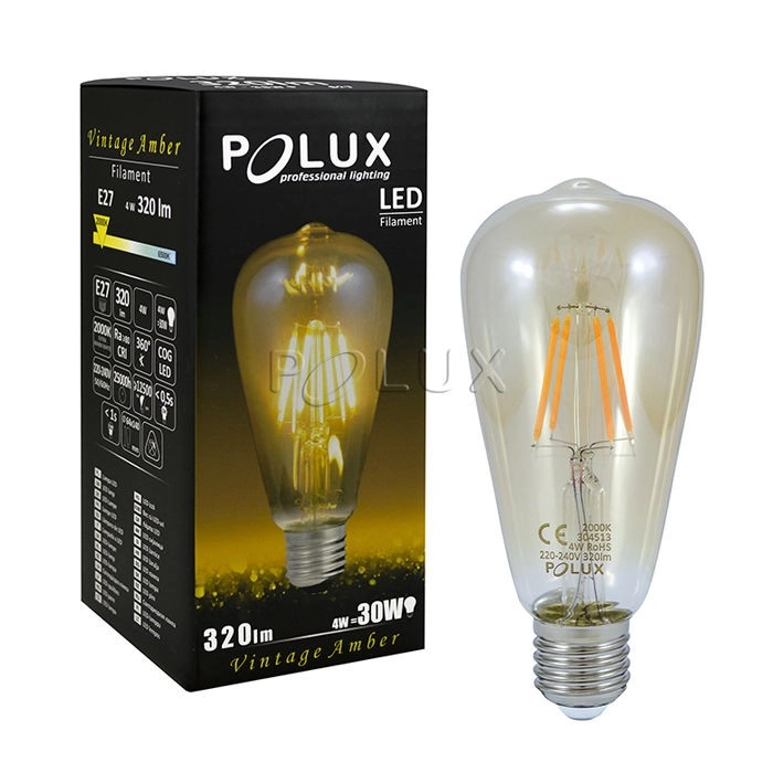 Klimatyczna żarówka podłużna Vintage Amber 304513 Polux ST64 LED 4W E27 edison 350lm 230V biała ciepła - w MLAMP to funkcjonalne rozwiązanie, dzięki któremu zyskasz wiele blasku w swoim pomieszczeniu.