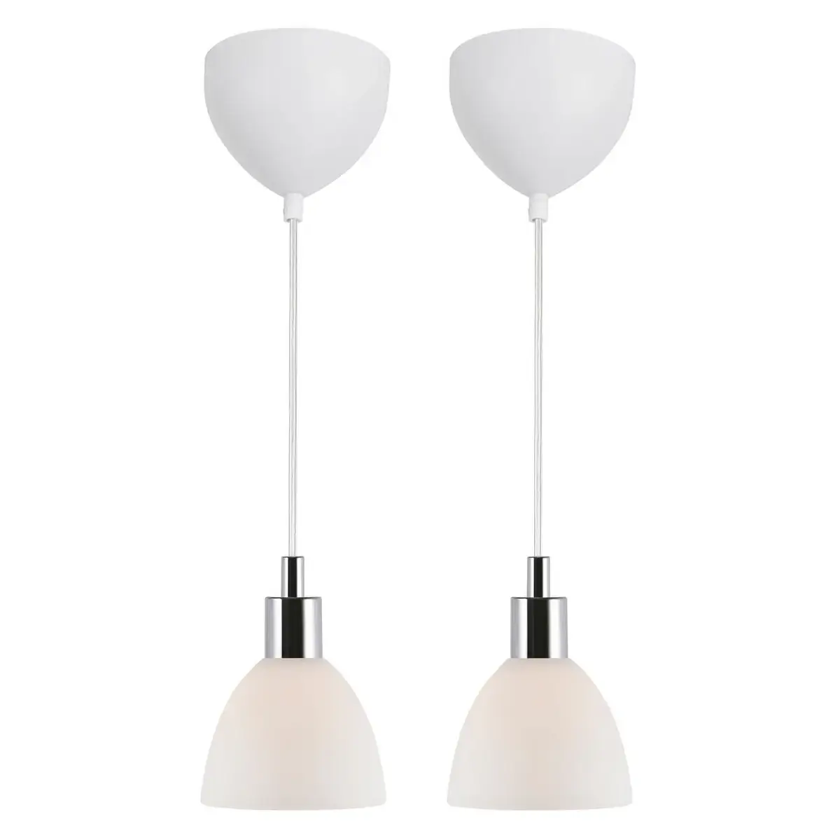 Komplet 2 lamp wiszących nad stół Ray 63233033 Nordlux 2-punktowa biała chrom w MLAMP łączy w sobie wyjątkowy i ponadczasowy design w najlepszym wydaniu, co stwarza szereg możliwości aranżacji przestrzeni w Twoim Domu. Oświetlenie z łatwością wkomponuje się w pomieszczenia o klasycznym i nowoczesnym klimacie.Lampa cechuje się funkcjonalnością, a jej uniwersalna forma sprawi, że jej blask światła wprowadzi komfortową i przytulną atmosferę sprzyjającą spotkaniom towarzyskim jak i odpręży po dniu spędzonym poza domem w spokojne wieczory z najbliższymi.