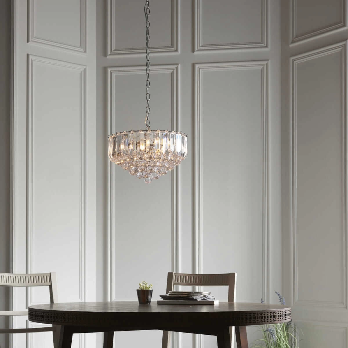Kryształowa lampa wisząca Fargo FARGO-14CH Endon chrom przezroczysta w MLAMP łączy w sobie wyjątkowy i ponadczasowy design w najlepszym wydaniu, co stwarza szereg możliwości aranżacji przestrzeni w Twoim Domu. Oświetlenie z łatwością wkomponuje się w pomieszczenia o klasycznym i nowoczesnym klimacie.Lampa cechuje się funkcjonalnością, a jej uniwersalna forma sprawi, że jej blask światła wprowadzi komfortową i przytulną atmosferę sprzyjającą spotkaniom towarzyskim jak i odpręży po dniu spędzonym poza domem w spokojne wieczory z najbliższymi.
