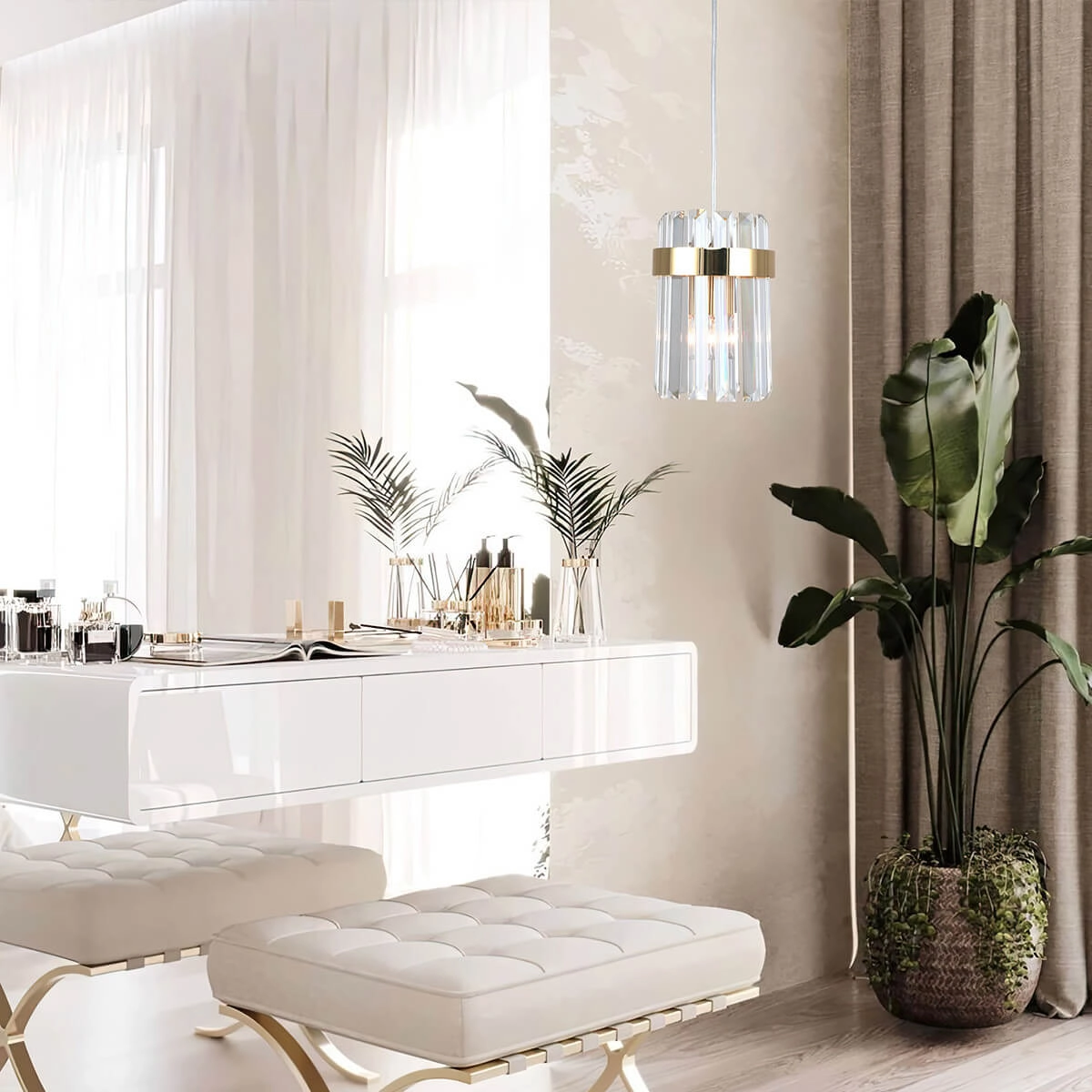 Model Vetro jest wykonany z praktycznych i trwałych materiałów, gwarantując jego użytkownikom radość i zadowolenie na wiele lat. Gustowne połączenie kolorów przezroczysty oraz złoty lampy sprawi, że lampa sprawdzi się zarówno w jasnych, jak i ciemnych wnętrzach. Materiały zastosowane w lampie to szkło oraz metal dzięki temu będzie ona łatwa w pielęgnacji i w utrzymaniu czystości.