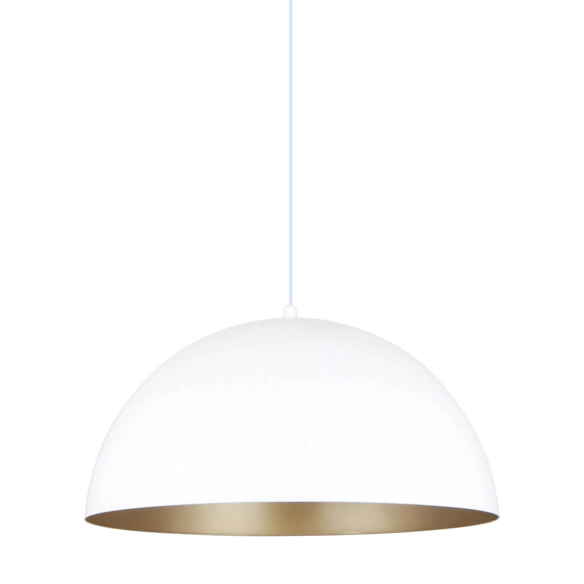 Kuchenna lampa wisząca Vela metalowa kopuła biała złota w MLAMP łączy w sobie wyjątkowy i ponadczasowy design w najlepszym wydaniu, co stwarza szereg możliwości aranżacji przestrzeni w Twoim Domu. Oświetlenie z łatwością wkomponuje się w pomieszczenia o klasycznym i nowoczesnym klimacie.Lampa cechuje się funkcjonalnościąVela jest wykonany z praktycznych i trwałych materiałów, gwarantując jego użytkownikom radość i zadowolenie na wiele lat. Gustowne połączenie kolorów biały oraz złoty lampy sprawi, że lampa sprawdzi się zarówno w jasnych, jak i ciemnych wnętrzach. Materiał zastosowany w lampie to metal dzięki temu będzie ona łatwa w pielęgnacji i w utrzymaniu czystości.