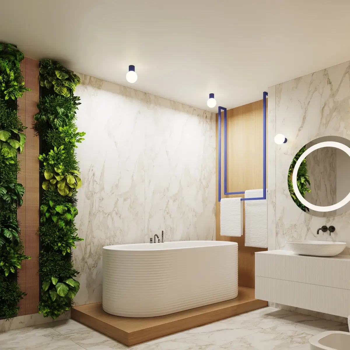 Kulista lampa ścienna do łazienki HALO SL.1737 kula IP44 biała niebieska