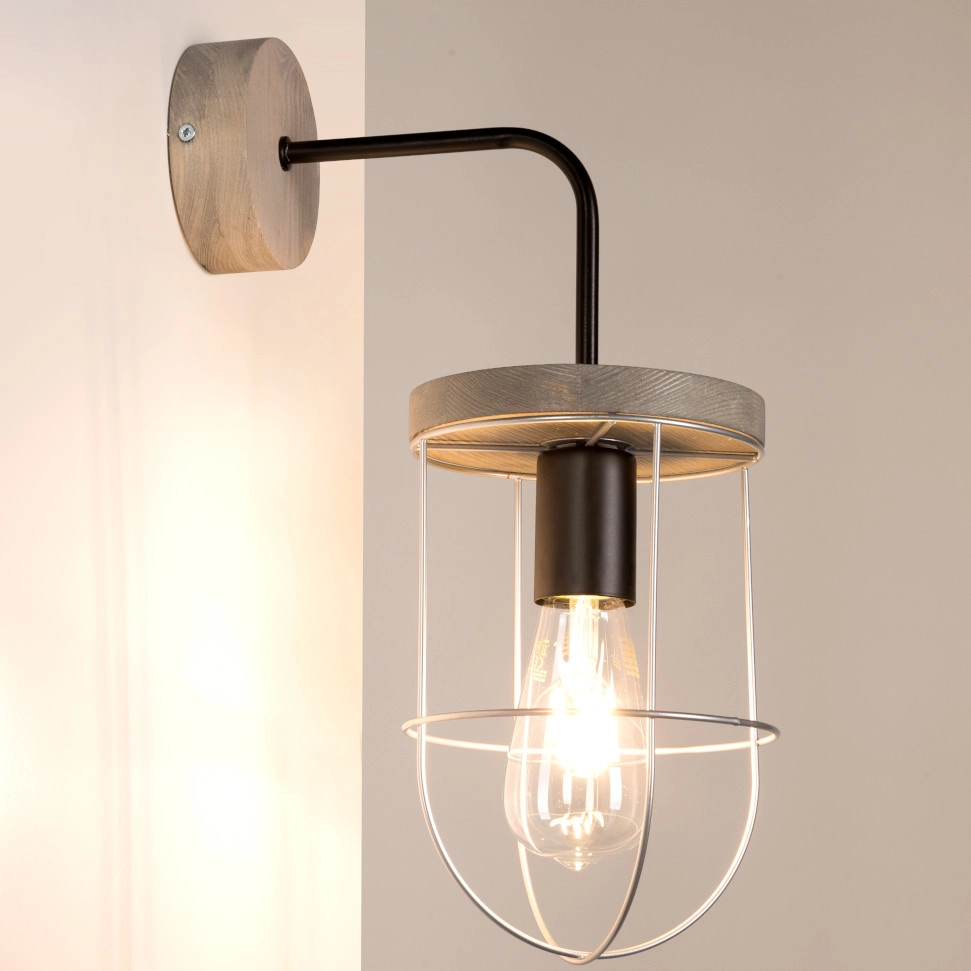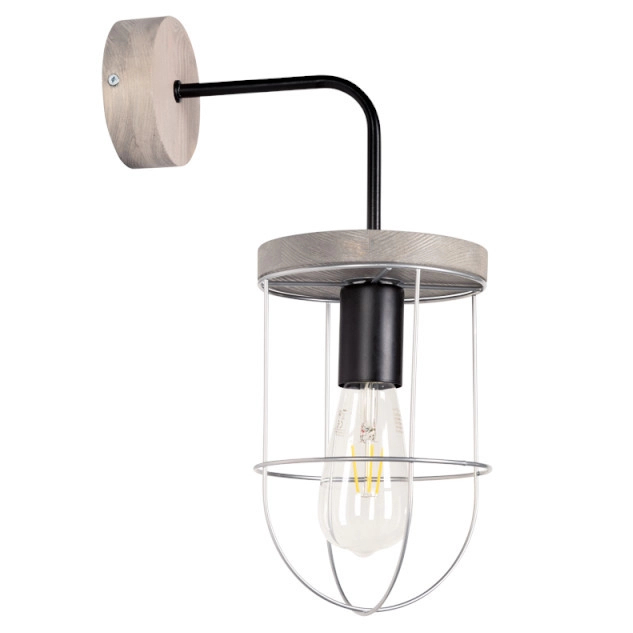 Lampa ścienna NETUNO 9207517157 industrialna drewniany kinkiet srebrny