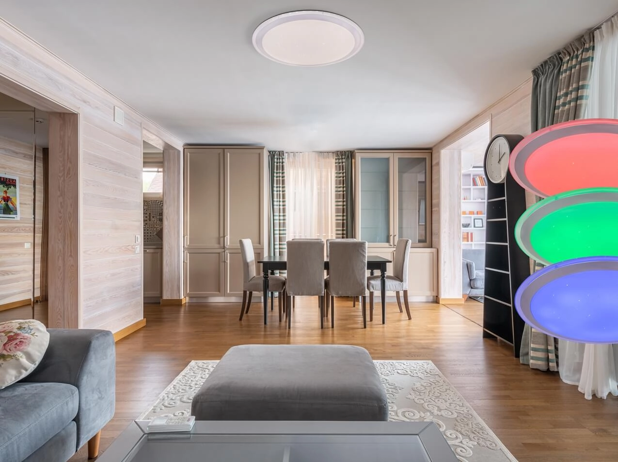 Zdalnie sterowana za pomocą pilota, aplikacji bądź głosowo przy użyciu asystenta google albo alexy. Umożliwia zmianę barwy i koloru światła, zapalanie, gaszenie i przyciemnianie.
