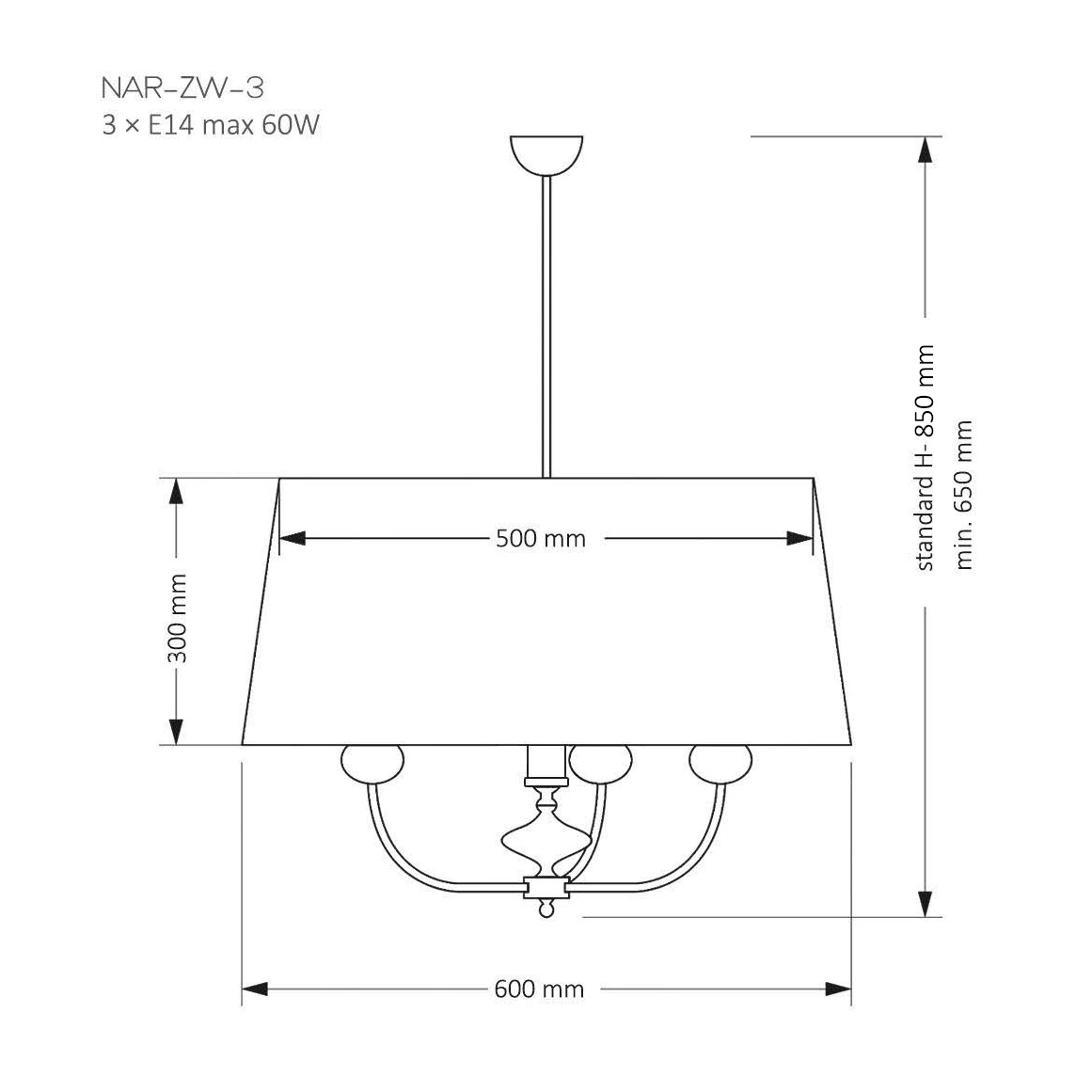 Lampa posiada miejsce na 3 energooszczędnych źródeł światła LED E14 oraz została wyposażona w stopień ochrony szczelności IP20. Jeśli nie wiesz jaki rodzaj oświetlenia wybrać do oświetlenia przestrzeni wypoczynkowych lub biurowych to oprawa z serii Narni z pewnością się w nich sprawdzi.