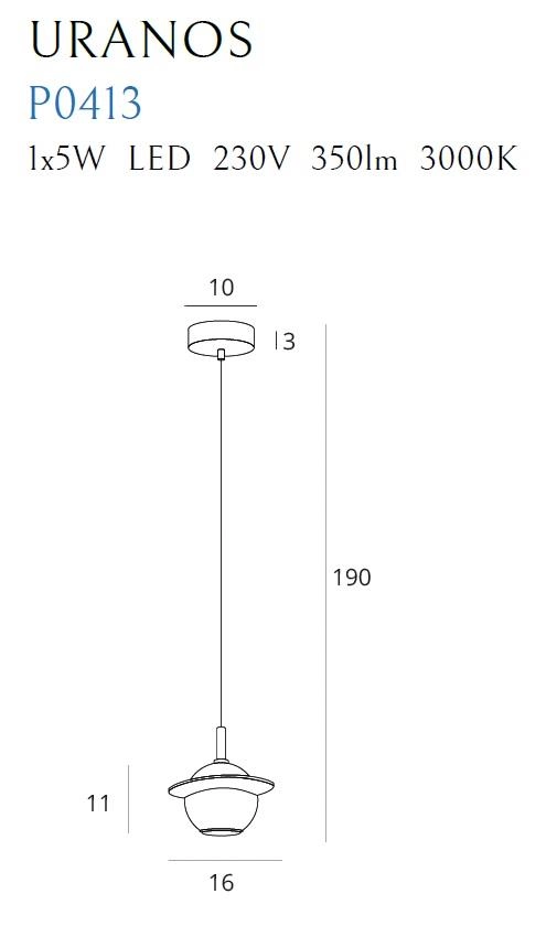 Lampa wisząca Uranos to modernistyczny zwis, swoją formą przypominający planetę z pierścieniem wokół. Jego klasyczna kolorystyka z pewnością przyciągnie wzrok, stając się genialną dekoracją dla nowoczesnych aranżacji. Biały marmurkowy klosz rozbłyśnie przyjemną dla oka poświatą za sprawą wbudowanego modułu LED o ciepłej barwie. Prezentowana przez =mlamp.pl= oprawa doskonale odnajdzie się w salonie, gabinecie lub sypialni. Prezentowana lampa posiada miejsce na jedno źródło światła, a jej wysokość można regulować na przewodzie, dzięki czemu można dopasować ją do różnego typu pomieszczeń. Specyfikacja: Wymiary: Źródła światła (w komplecie): 1 x moduł LED (zainstalowany na stałe - niewymienny) / 230V / 1,5W Produkt posiada certyfikaty zgodności i objęty jest GWARANCJĄ PRODUCENTA. |