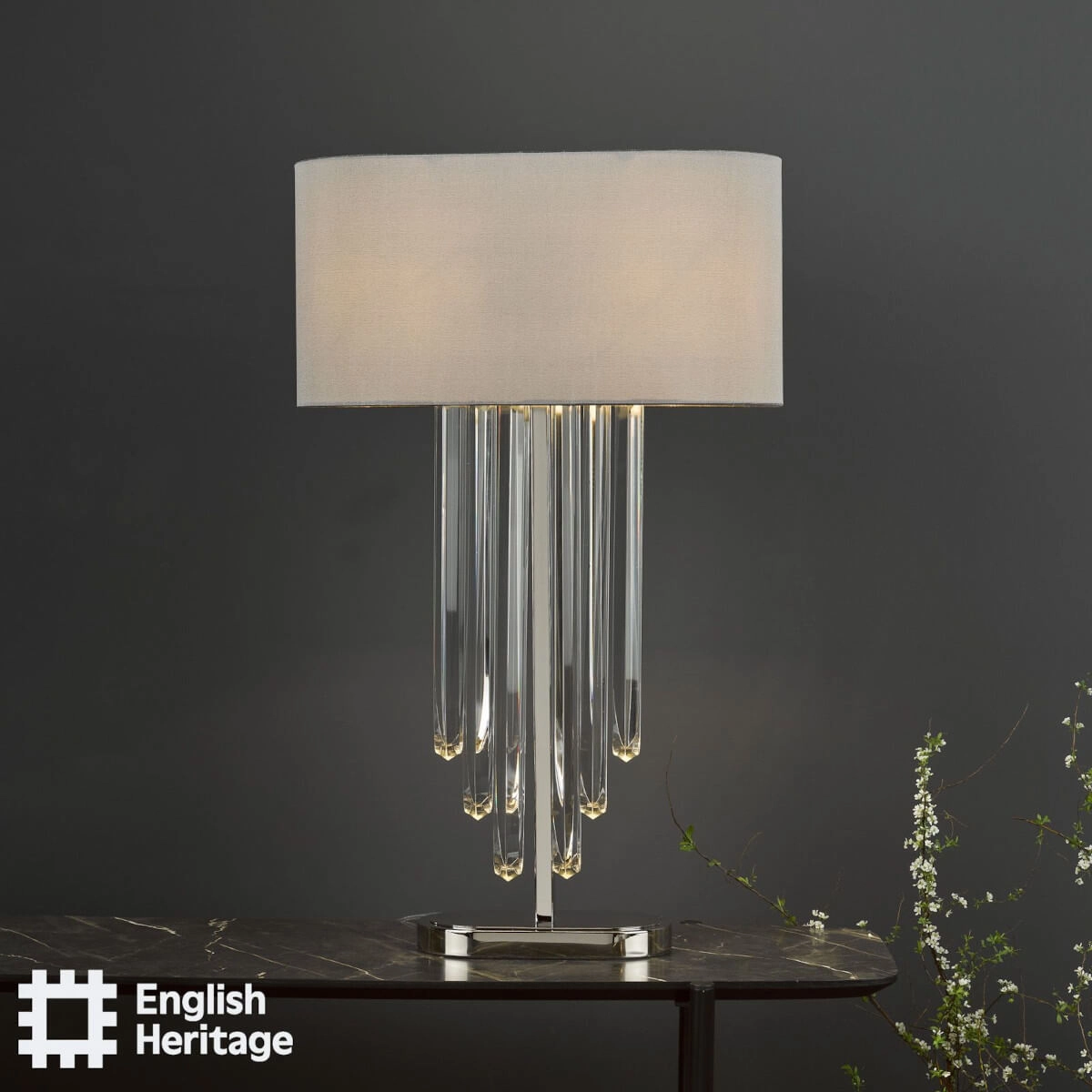 Lampka stołowa Eltham ELT4238-EH Dar Lighting sople kryształy do pokoju szara