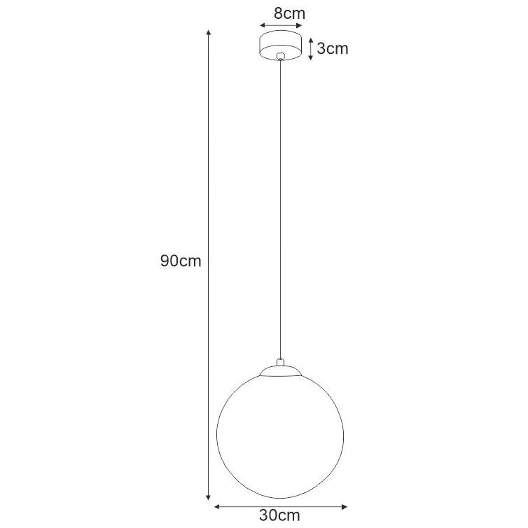 Wymiary: Wysokość całkowita (skracana): 90 cm Szerokość: 30 cm Wysokość oprawy bez zawieszenia: 30 cm Średnica podsufitki: 8 cm Wysokość podsufitki: 3 cm Regulacja kąta światła: nie Stopień szczelności: IP20