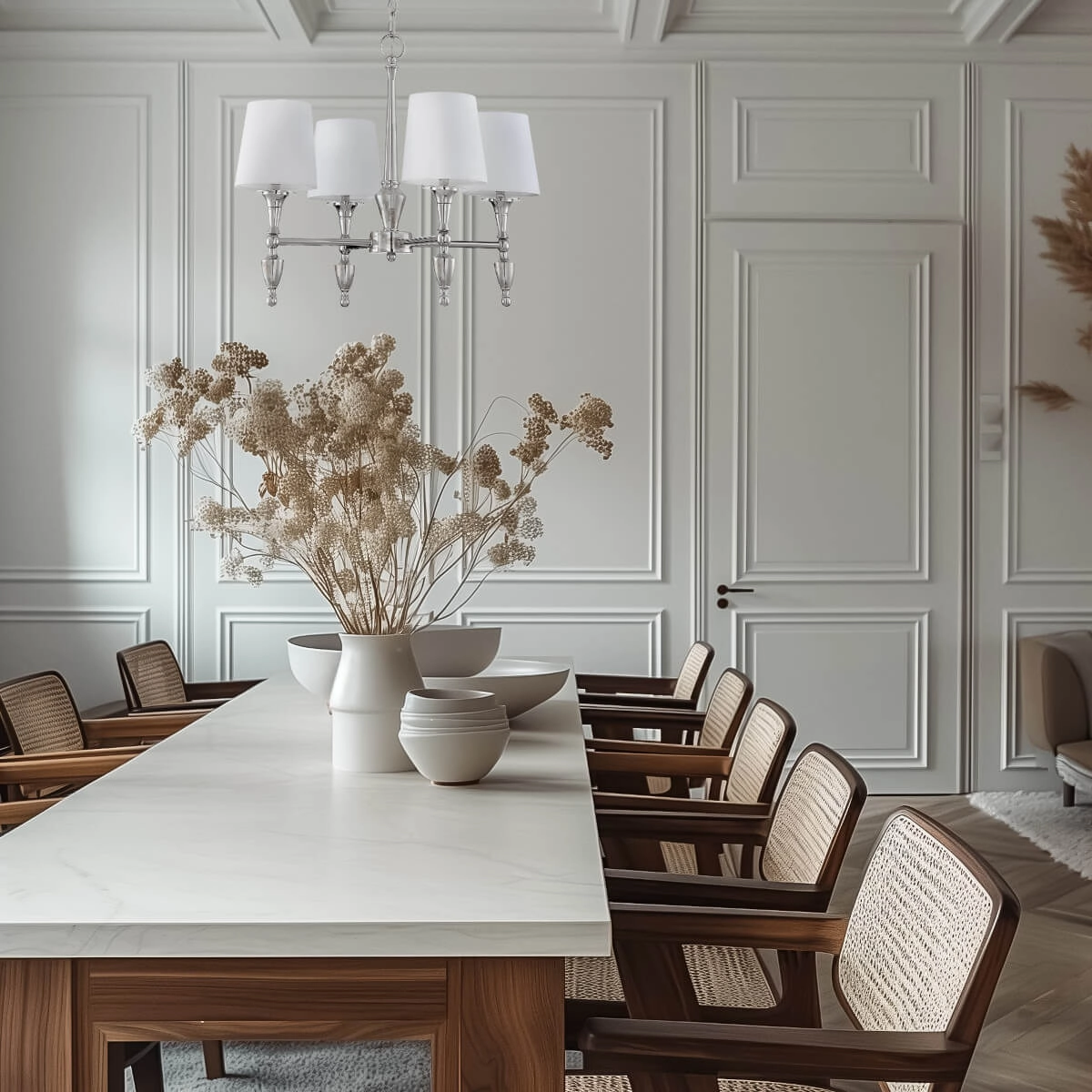 Metalowa lampa wisząca Austin P04135NI-WH Cosmolight klasyczna biały nikiel w MLAMP łączy w sobie wyjątkowy i ponadczasowy design w najlepszym wydaniu, co stwarza szereg możliwości aranżacji przestrzeni w Twoim Domu. Oświetlenie z łatwością wkomponuje się w pomieszczenia o klasycznym i nowoczesnym klimacie.Lampa cechuje się funkcjonalnością, a jej uniwersalna forma sprawi, że jej blask światła wprowadzi komfortową i przytulną atmosferę sprzyjającą spotkaniom towarzyskim jak i odpręży po dniu spędzonym poza domem w spokojne wieczory z najbliższymi.