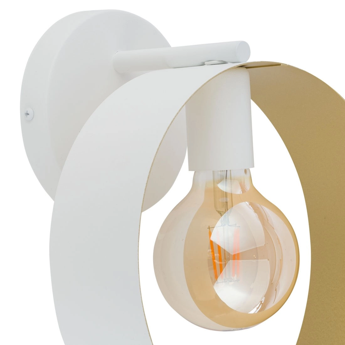Metalowy kinkiet HOOP 32307 Sigma salonowy pierścień ścienny biały łączy w sobie wyjątkowy design oraz uniwersalny i ponadczasowy styl, co stwarza szereg możliwości zastosowania w Twoim Domu. Unikalna forma oświetlenia, zaakcentuje wystrój pomieszczeń, a blask światła wprowadzi komfortową i przytulną atmosferę, sprzyjającą spotkaniom towarzyskim jak i spędzaniu czasu wśród najbliższych. Oświetlenie z serii HOOP cechuje się funkcjonalnością i praktycznością. Gustowne połączenie kolorów oprawy: biały - złoty i zastosowanych w oprawie materiałów: metal sprawi, że znajdzie zastosowanie zarówno w ciemnych jak i w jasnych wnętrzach. Wysoka jakość wykonania i ergonomiczna konstrukcja lampy zagwarantuje łatwość w utrzymaniu czystości oraz zadowolenie na wiele lat. Wybierając model HOOP zyskasz zachwycającą i cieszącą oko dekorację, która nada przestrzeniom niepowtarzalnego wyglądu i elegancji. Lampa posiada miejsce na światła E27, o stopniu szczelności IP20. Oświetlenie doskonale prezentuje się zarówno w towarzystwie innych lamp, jak i pojedynczo oraz jako instalacje świetlne, dzięki czemu można dopasować ją do różnego typu pomieszczeń.