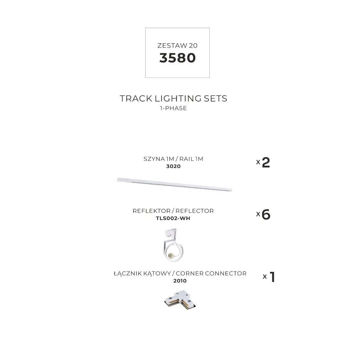 Narożny jednoobwodowy zestaw szynoprzewodów 3580 biały