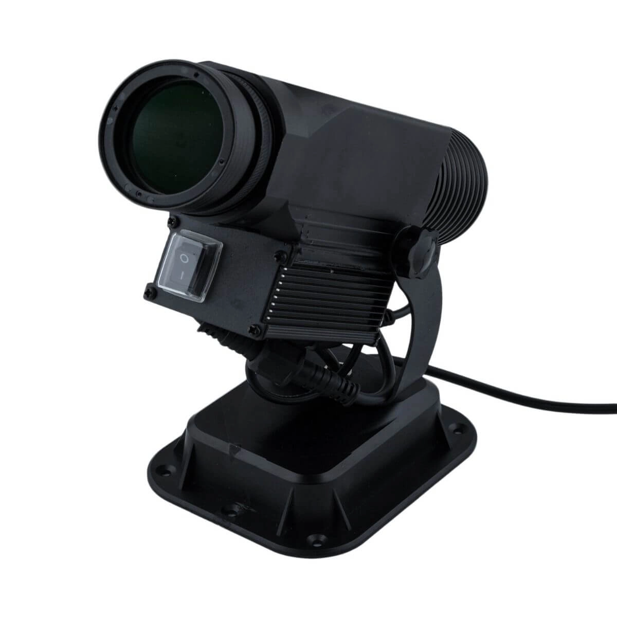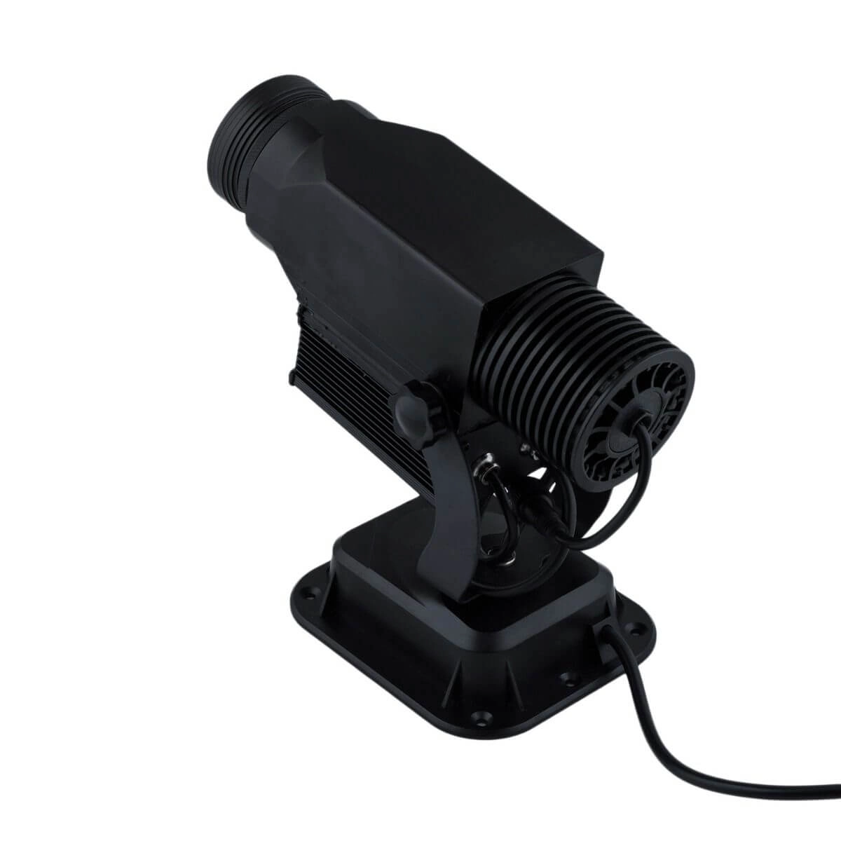 Projektor Logo 15W IP65 Obrotowy to produkt wykonany z wytrzymałego aluminium o najwyższej jakości. Ta innowacyjna forma reklamy jest doskonałą alternatywą dla standardowych banerów reklamowych, plakatów i potykaczy. Dobrze sprawdza się w sklepach, supermarketach, restauracjach, galeriach i klubach. Z powodzeniem można go również stosować na targach branżowych, bankietach, konferencjach czy weselach. W celu wyświetlenia firmowej grafiki w jasnych i nasyconych barwach (także monochromatycznych), potrzebujemy białej ściany. Ustawienie ostrości obrazu jest bardzo proste – tak samo jak wymiana szkiełka „gobo” z wyświetlonym logo oraz ustawienie urządzenia w dowolnie wybranym kierunku. Wyświetlane tło może być również transparentne lub białe. Po złożeniu zamówienia należy przesłać projekt graficzny, który zostanie umieszczony za szkiełku. W przypadku niektórych projektów może ono podlegać indywidualnej wycenie. Czas realizacji projektu wynosi 3 tygodnie. Dzięki chłodzeniu przez radiator pasywny projektor pracuje bezgłośnie. W dodatku użyte w nim diody CREE są odporne na uderzenia, wibracje i drgania oraz mają żywotność 50 000 godzin. Źródło światła nie emituje promieniowania UV. Atutem urządzenia jest również niski pobór energii elektrycznej (w porównaniu np. do projektorów halogenowych). Urządzenie ma kompaktowe wymiary (320 mm x 150 mm x 130 mm). Projektor może pracować w zakresie temperatur od -30°C do 50°C. Jego kąt świecenia wynosi 14°.