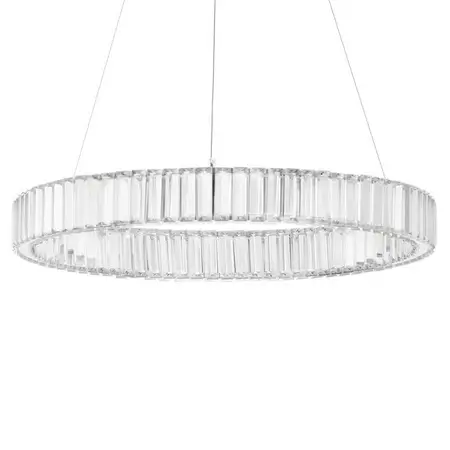 Okrągła lampa wisząca do sypialni BAUTA LED 40W srebrna łączy w sobie wyjątkowy design oraz uniwersalny i ponadczasowy styl. co stwarza szereg możliwości zastosowania w Twoim Domu. Unikalna forma oświetlenia. zaakcentuje wystrój pomieszczeń. a blask światła wprowadzi komfortową i przytulną atmosferę sprzyjającą spotkaniom towarzyskim jak i spędzaniu czasu wśród najbliższych.Oświetlenie z serii BAUTA cechuje się funkcjonalnością i praktycznością. Gustowne połączenie kolorów oprawy: srebrny oraz przezroczysty i zastosowanych w oprawie materiałów: Metal | stal oraz Kryształ sprawi że znajdzie zastosowanie zarówno w ciemnych jak i w jasnych wnętrzach.