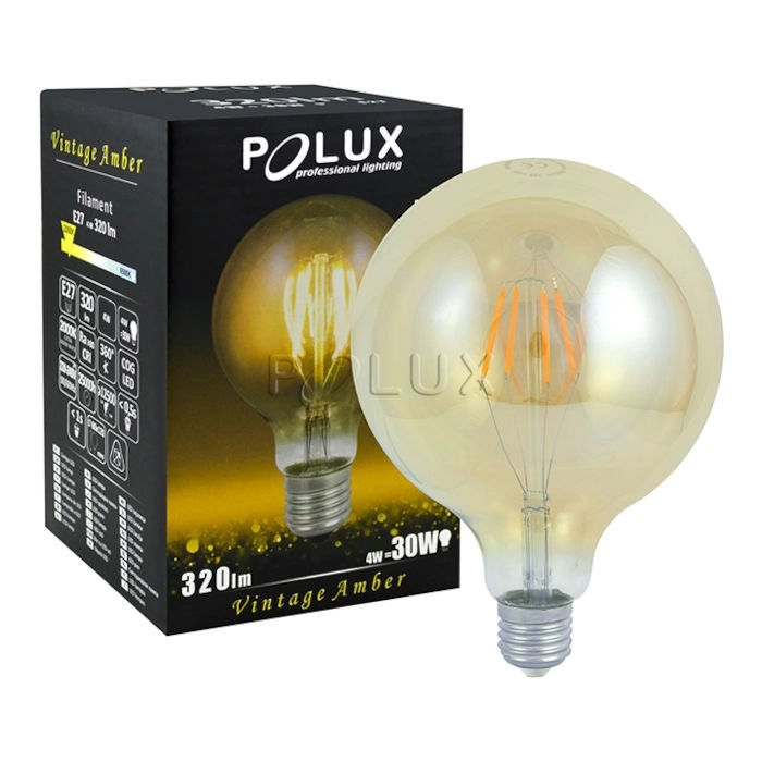 Okrągła żarówka dekoracyjna Vintage Amber 304520 Polux G80 LED 4W E27 bańka 350lm 230V biała ciepła - w MLAMP to funkcjonalne rozwiązanie, dzięki któremu zyskasz wiele blasku w swoim pomieszczeniu.