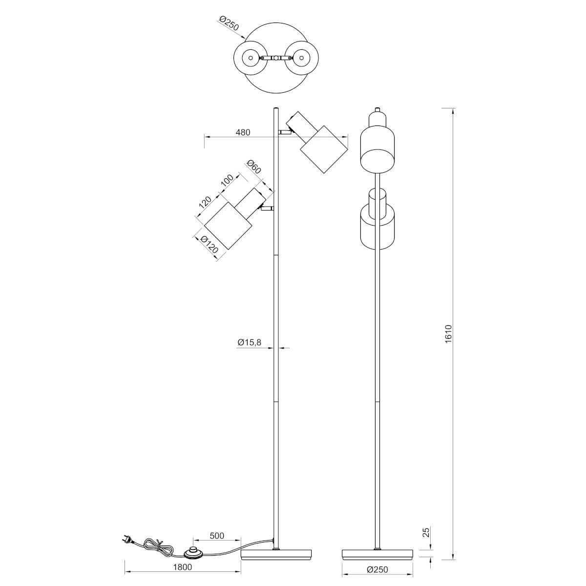 Podłogowa lampa ELIOR DL232419400 Trio reflektorki metalowa czarna