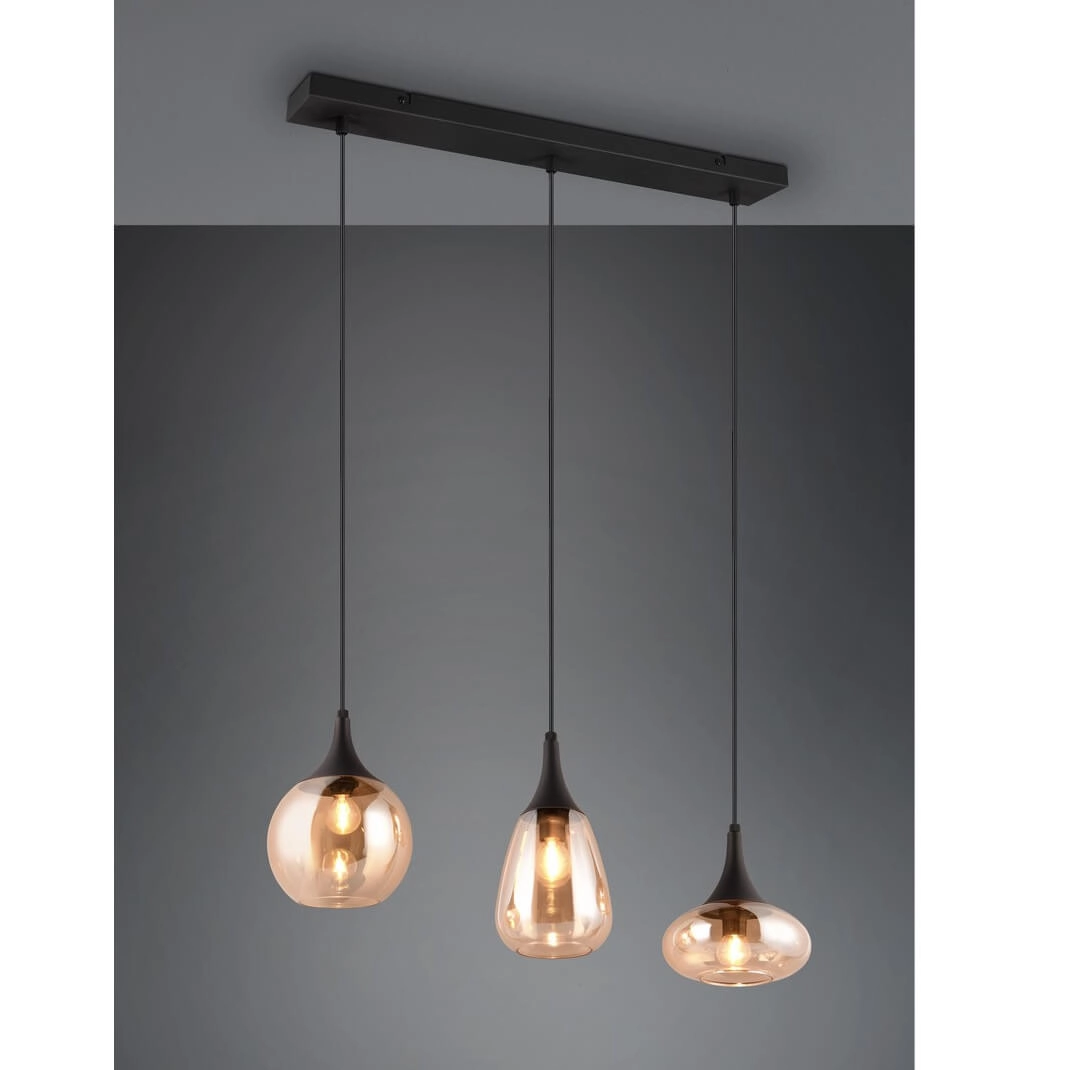 Potrójna lampa nad stół VESTARI DL313317000 szkło czarna bursztynowa