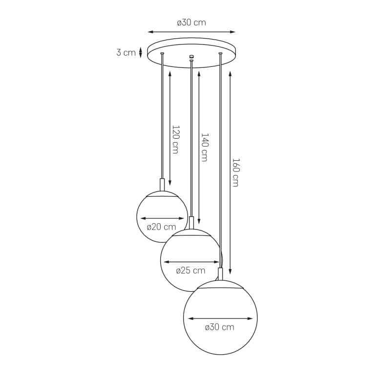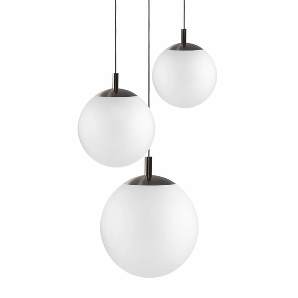 Potrójna lampa wisząca ALUR 11144320 Kaspa kule białe tytan szczotkowany