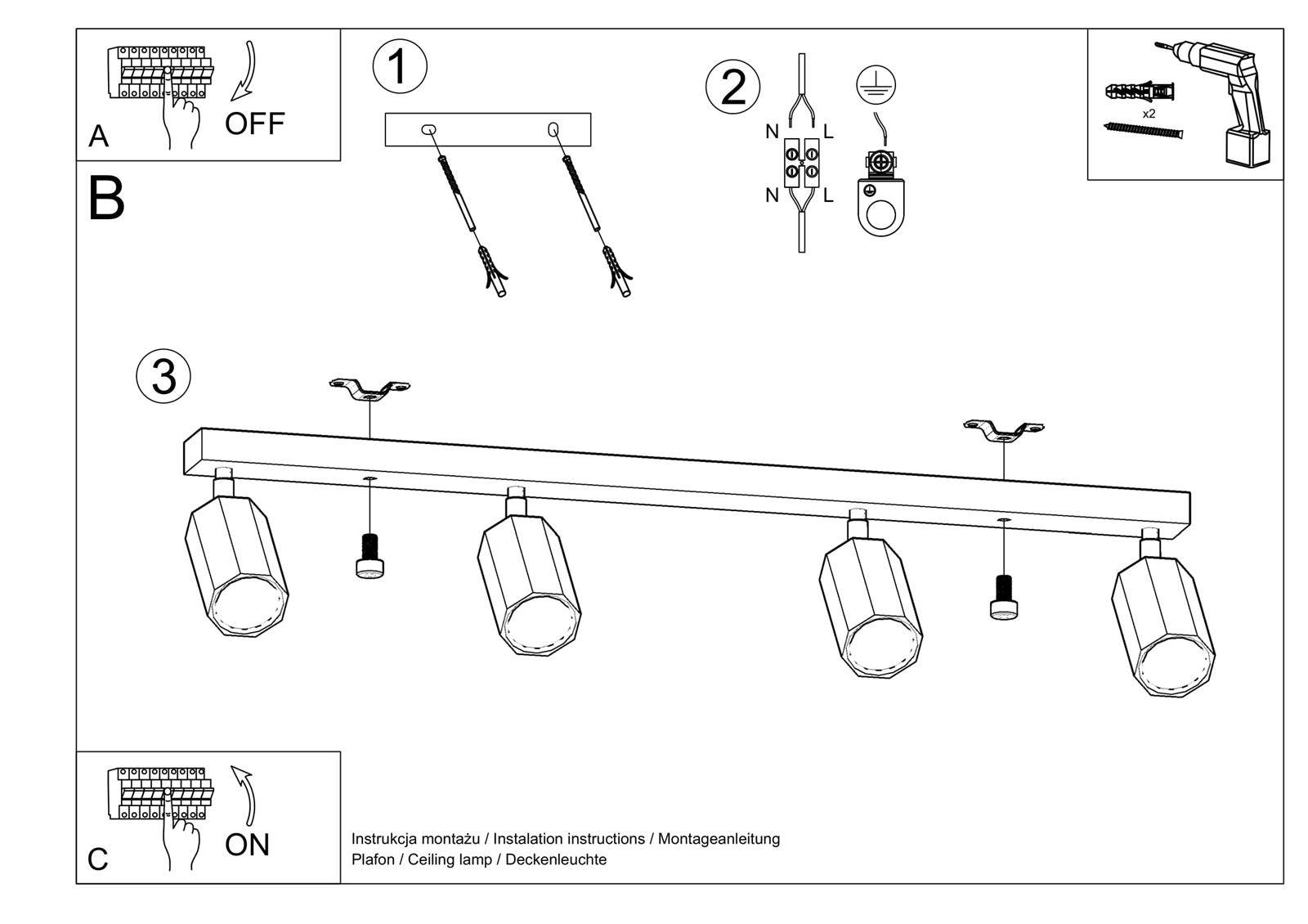 Wybierając model zyskasz zachwycającą i cieszącą oko dekorację, która nada przestrzeniom niepowtarzalnego wyglądu i elegancji. Lampa posiada miejsce na 4 źródła światła GU10, o stopniu szczelności IP20.