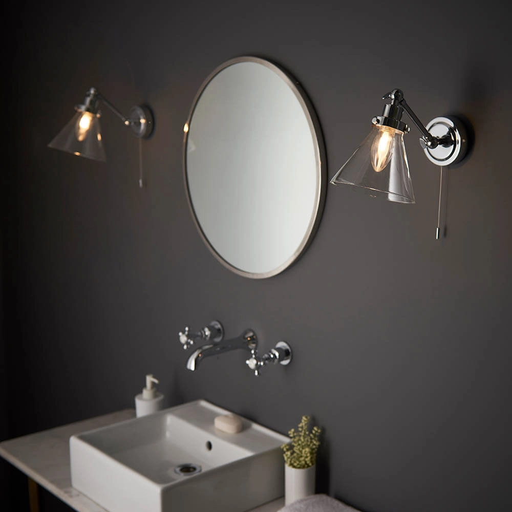 Regulowany kinkiet retro Faraday 93853 IP44 szklany chrom przezroczysty