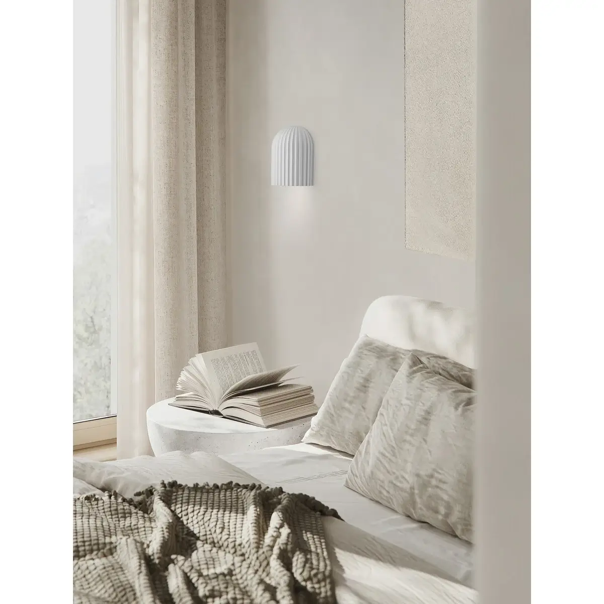 Ryflowana lampa ścienna GIRONTO LE45304 do salonu gipsowa biała