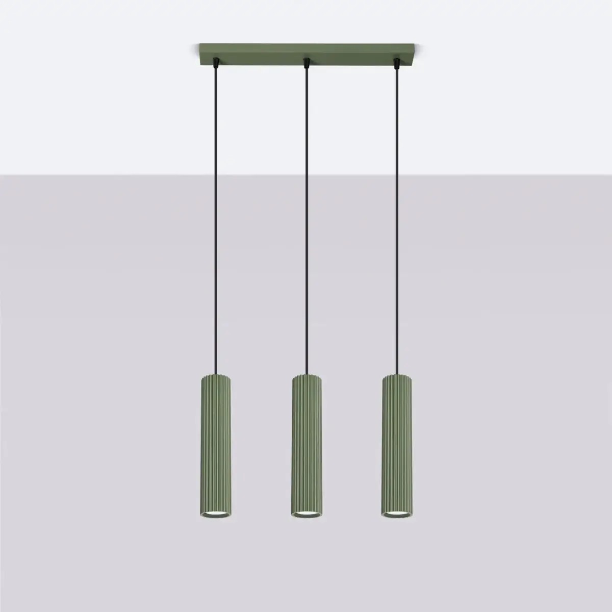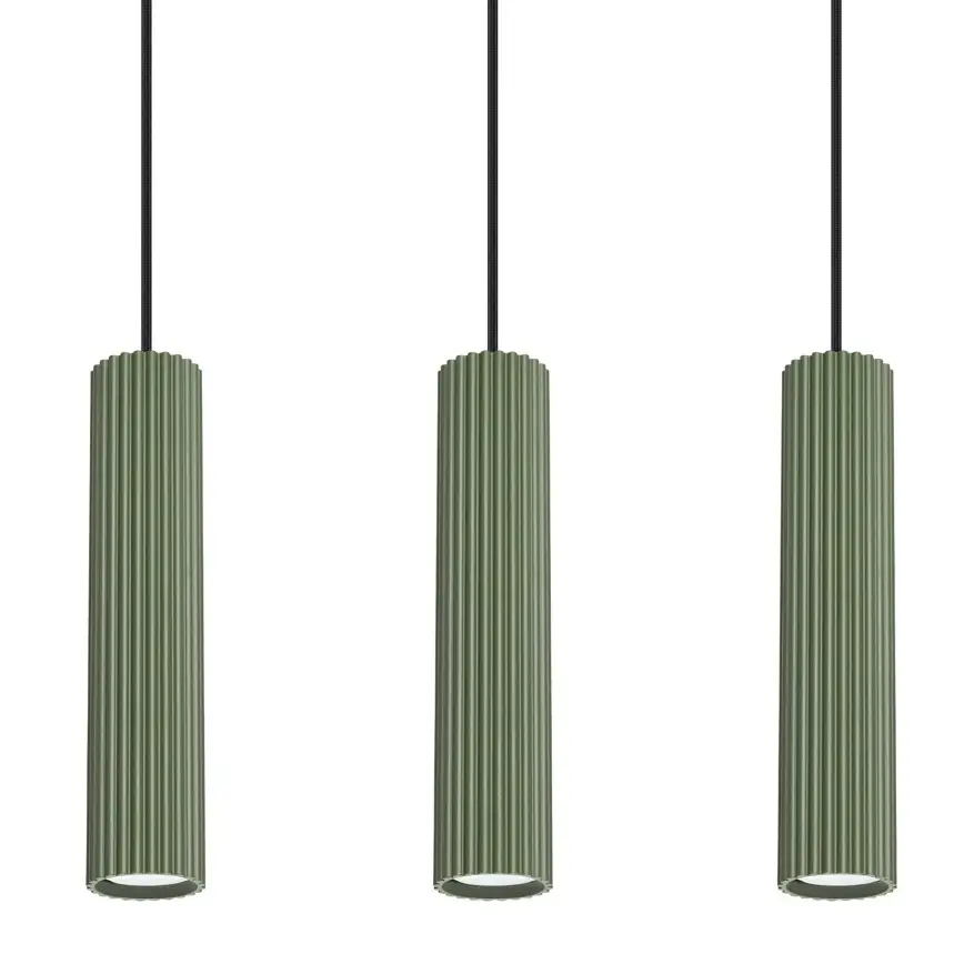 Ryflowana lampa wisząca KARBON SL.1613 potrójna oliwkowa