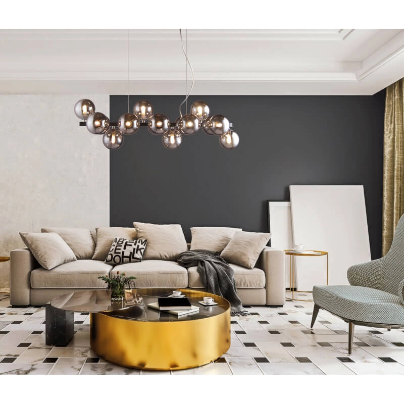 Salonowa lampa wisząca Marbelio PND-6161-16 CH+SM kule chrom przydymione w MLAMP łączy w sobie wyjątkowy i ponadczasowy design w najlepszym wydaniu, co stwarza szereg możliwości aranżacji przestrzeni w Twoim Domu. Oświetlenie z łatwością wkomponuje się w pomieszczenia o klasycznym i nowoczesnym klimacie.