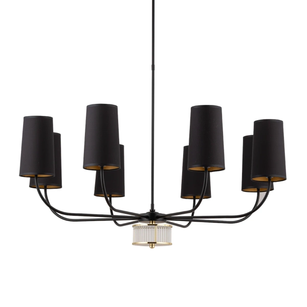 Salonowy żyrandol Pesaro PES-ZW-8 (CZ) z abażurem czarny mosiądz