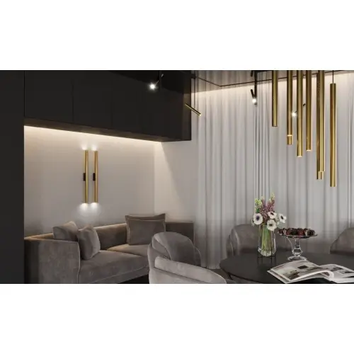 Ścienna lampa AKADI 8877 metalowa tuba przyścienna czarna złota
