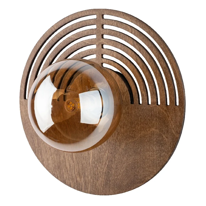 Skandynawska ścienna lampa Lunar Wood 11013 okrągła drewniana brązowy