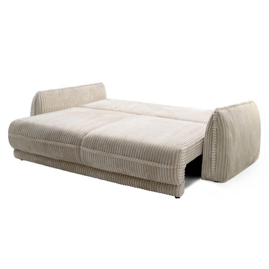 Model Sofa z pojemnikiem na pościel z serii NOA powstał z uniwersalnego materiału, jakim jest tkanina.