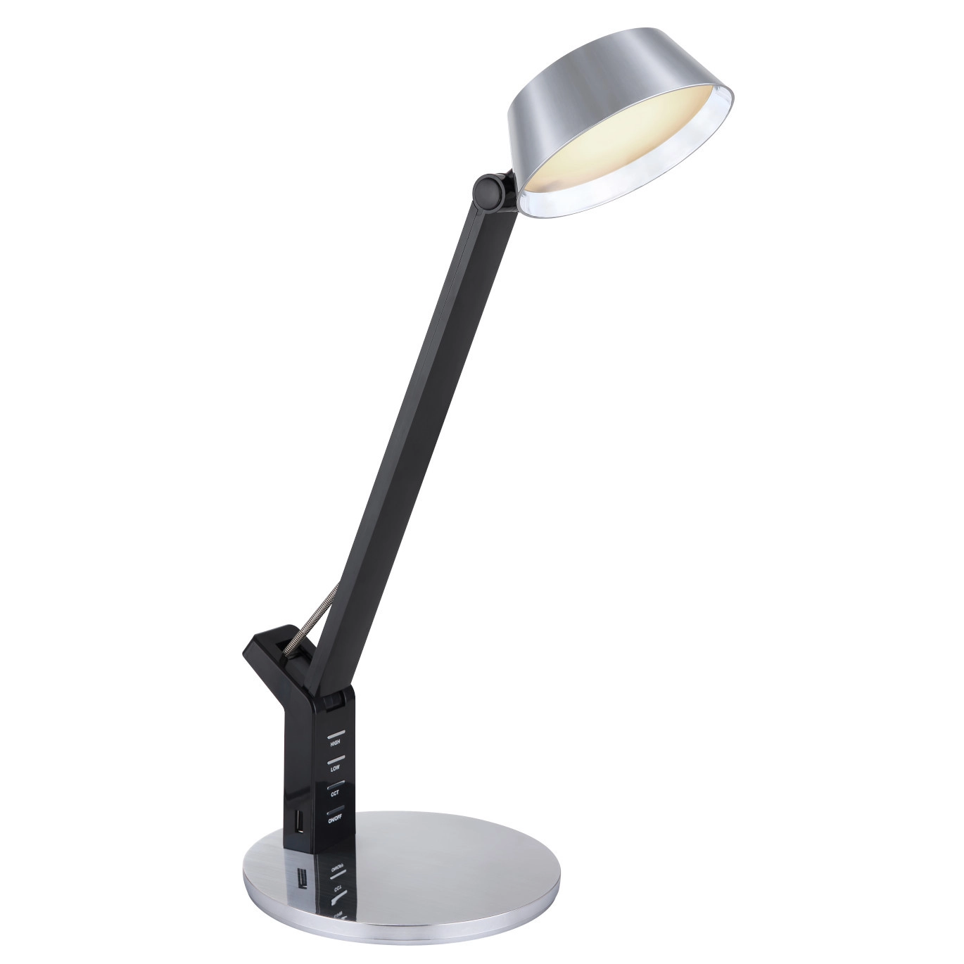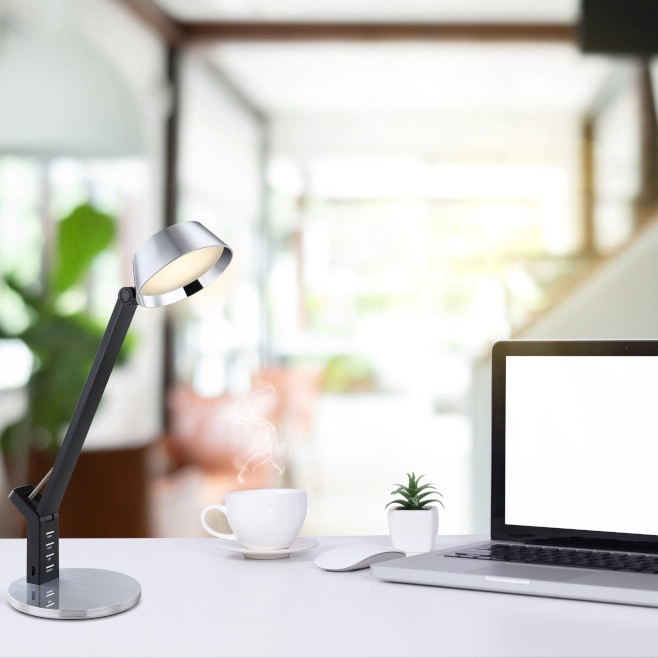 Stojąca lampa URSINO 58422S LED 8W 3000-6300K z portem USB czarna srebrna