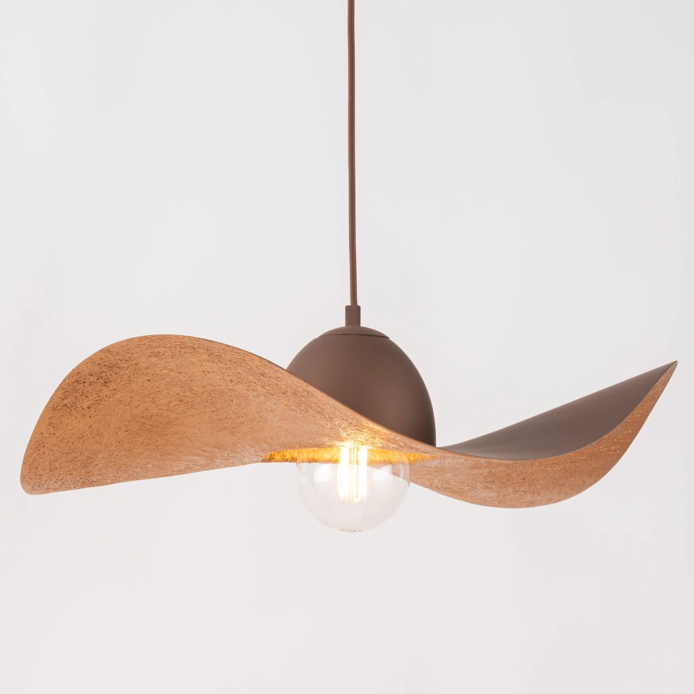 Sypialniana lampa wisząca KAPELLO metalowy kapelusz brązowy łączy w sobie wyjątkowy design oraz uniwersalny i ponadczasowy styl, co stwarza szereg możliwości zastosowania w Twoim Domu. Unikalna forma oświetlenia, zaakcentuje wystrój pomieszczeń, a blask światła wprowadzi komfortową i przytulną atmosferę, sprzyjającą spotkaniom towarzyskim jak i spędzaniu czasu wśród najbliższych. Oświetlenie z serii KAPELLO cechuje się funkcjonalnością i praktycznością. Gustowny kolor oprawy: brązowy - miedziany i zastosowany w oprawie materiału: metal | tworzywo sprawią, że znajdzie zastosowanie zarówno w ciemnych jak i w jasnych wnętrzach. Wysoka jakość wykonania i ergonomiczna konstrukcja lampy zagwarantuje łatwość w utrzymaniu czystości oraz zadowolenie na wiele lat. Wybierając model 32352 zyskasz zachwycającą i cieszącą oko dekorację, która nada przestrzeniom niepowtarzalnego wyglądu i elegancji. Lampa posiada 1 miejsce na źródło światła E27, o stopniu szczelności IP20. Oświetlenie doskonale prezentuje się zarówno w towarzystwie innych lamp, jak i pojedynczo oraz jako instalacje świetlne, dzięki czemu można dopasować ją do różnego typu pomieszczeń.