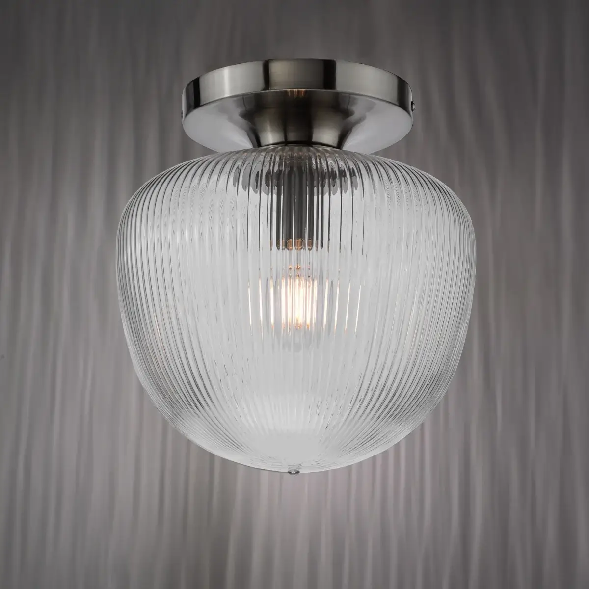 Szklana lampa sufitowa do jadalni Abrielle ABR5208 ryflowany nikiel