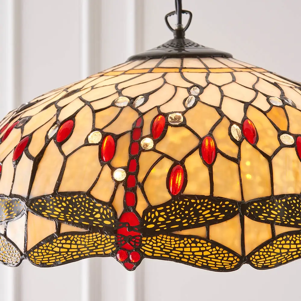 Szklana wisząca lampa nad stół Dragonfly 64079 na łańcuchu tiffany beżowa