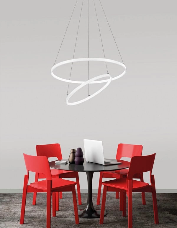 Wisząca lampa BANOS LE99322 do jadalni LED 85W biała łączy w sobie wyjątkowy design oraz uniwersalny i ponadczasowy styl. co stwarza szereg możliwości zastosowania w Twoim Domu. Unikalna forma oświetlenia. zaakcentuje wystrój pomieszczeń. a blask światła wprowadzi komfortową i przytulną atmosferę sprzyjającą spotkaniom towarzyskim jak i spędzaniu czasu wśród najbliższych.