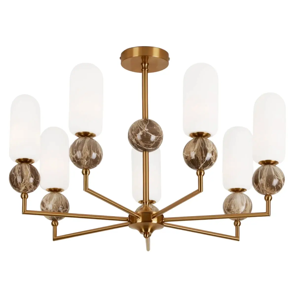 Model Nova jest wykonany z praktycznych i trwałych materiałów, gwarantując jego użytkownikom radość i zadowolenie na wiele lat. Gustowne połączenie kolorów złoty oraz brązowy lampy sprawi, że lampa sprawdzi się zarówno w jasnych, jak i ciemnych wnętrzach. Materiały zastosowane w lampie to metal oraz szkło dzięki temu będzie ona łatwa w pielęgnacji i w utrzymaniu czystości.